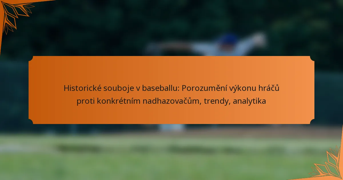 Historické zápasy v baseballu se vztahují k výkonu hráčů proti konkrétním nadhazovačům v průběhu času. Tyto zápasy poskytují informace o tom, jak si jednotliví hráči vedou proti určitým stylům a strategiím, což pomáhá týmům činit informovaná rozhodnutí během zápasů.
