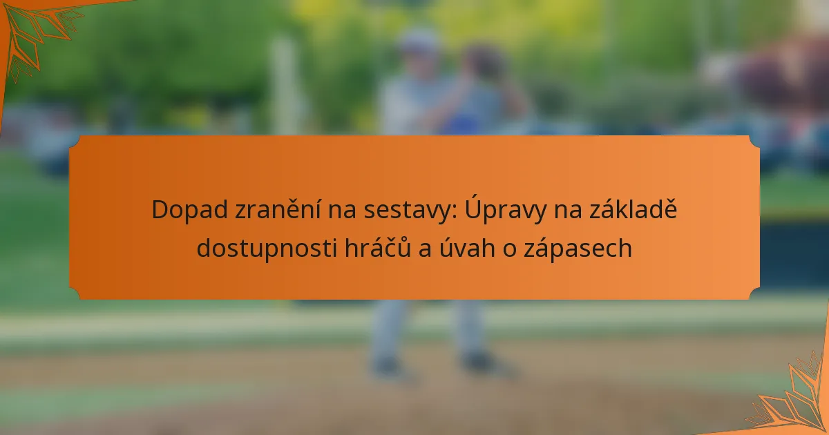 Týmy používají různé strategie k úpravě svých sestav v reakci na zranění hráčů, přičemž se zaměřují na maximalizaci výkonu navzdory snížené dostupnosti. Tyto úpravy často zahrnují taktická změny, posuny pozic hráčů a efektivní využití hráčů z lavičky pro udržení konkurenční výhody.